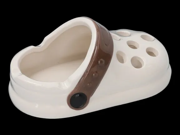 Kremowa Popielniczka z Brązowym Paskiem w Kształcie Klapka Buta typu Crocs