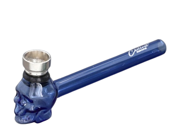 Fajka Szklana Cygarniczka Lufka w Kształcie Czaszki 13 cm Jasny Niebieski