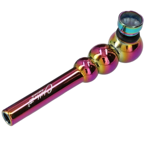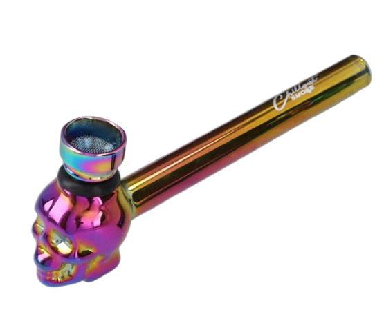 Cygarniczka Szklana Lufka z Czaszką i Metalowym Cybuchem Tęczowa 12 cm