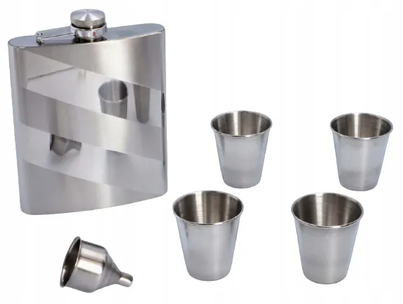 Oferujemy elegancką i praktyczną piersiówkę o pojemności 540 ml, którą otrzymasz w komplecie z czterema kieliszkami i lejkiem. Idealny wybór na prezent dla mężczyzny, ten zestaw łączy w sobie nie tylko estetykę, ale także funkcjonalność. Piersiówka charakteryzuje się nowoczesnym designem, co czyni ją doskonałym akcesorium na różne okazje, takie jak podróże, spotkania ze znajomymi czy wyprawy turystyczne. Dzięki kompaktowym wymiarom możesz ją łatwo schować w kieszeni marynarki, kurtki lub spodni, co sprawia, że niepostrzeżenie możesz cieszyć się swoim ulubionym napojem w dogodnym momencie. Dodatkowym atutem jest szczelne zamknięcie, które zapobiega wyciekaniu trunków. W skład zestawu wchodzi również lejek, co ułatwia nalewanie płynów do piersiówki, oraz eleganckie opakowanie, które sprawia, że jest to doskonały pomysł na prezent. Zachęcamy do zakupu – ten produkt to nie tylko praktyczne, ale także stylowe akcesorium, które z pewnością przypadnie do gustu każdemu mężczyźnie.