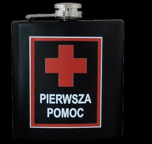 Elegancka Piersiówka Stalowa 180 ml z Napisem "Pierwsza Pomoc"