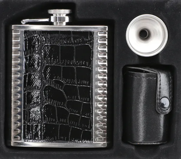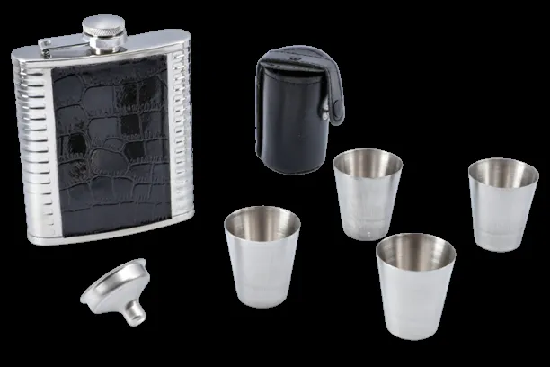 Elegancka Skórzana Piersiówka z Kieliszkami to doskonały wybór dla osób ceniących sobie styl i funkcjonalność. Wykonana z wysokiej jakości stali nierdzewnej, zapewnia trwałość oraz odporność na zarysowania i korozję. Jej pojemność wynosząca 207.01 mL sprawia, że jest idealna do przechowywania ulubionego trunku w drodze na piknik czy przyjęcie.Produkt wyróżnia się niewielkimi wymiarami—wysokość 12 cm, szerokość 9 cm i średnica gwintu 11 cm—co czyni go poręcznym i łatwym do schowania w kieszeni kurtki czy torbie. Każda piersiówka jest elegancko zapakowana w oryginalne kartonowe pudełko producenta, co czyni ją idealnym prezentem na różne okazje, takie jak urodziny, rocznice czy Dzień Ojca.Dodatkowo, zestaw zawiera dwa kieliszki, które idealnie komponują się z piersiówką, umożliwiając wspólne degustowanie ulubionych napojów w gronie przyjaciół. Eleganckie wykończenie oraz klasyczny design sprawiają, że ten produkt jest nie tylko praktyczny, ale również stanowi gustowny dodatek do każdej kolekcji akcesoriów. Wybierz Elegancką Skórzaną Piersiówkę z Kieliszkami i podaruj wyjątkowy prezent, który z pewnością zachwyci każdego miłośnika dobrego smaku.