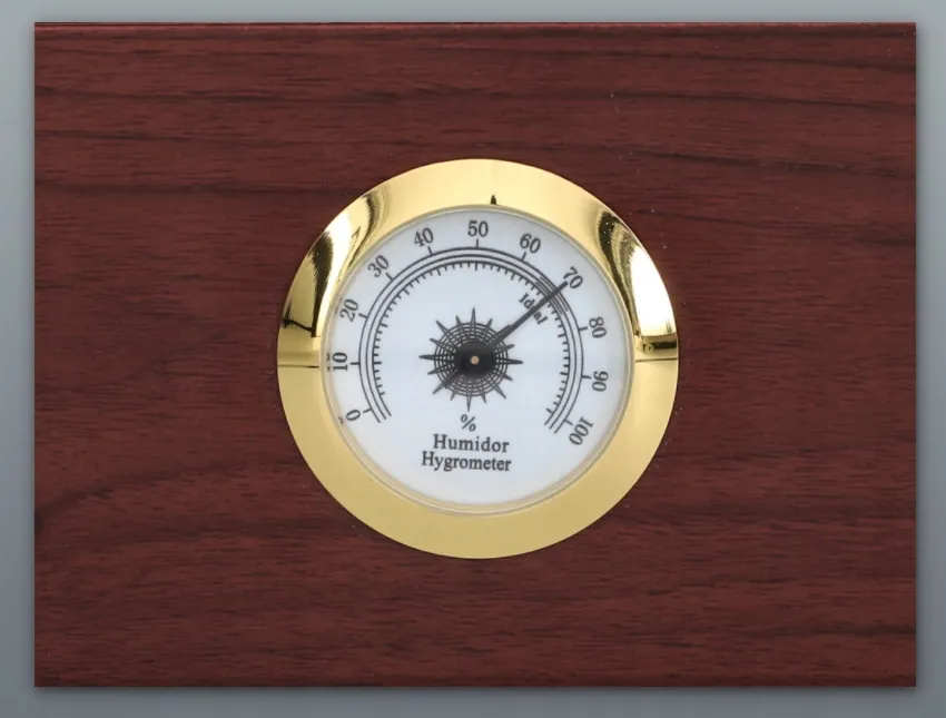 6. Wilgotność powinna wynosić około 70%. Jest ona kontrolowana przez higrometr, który powinien być przymocowany również na środku pokrywy humidora (higrometr jest magnetyczny).