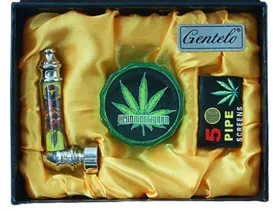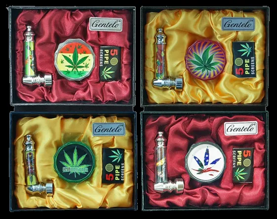 Ten wyjątkowy zestaw prezentowy marki Gentelo zawiera wszystko, czego potrzebuje każdy miłośnik palenia – kolorowy plastikowy młynek do tytoniu z motywem liścia, praktyczną szklaną fajkę z metalowymi elementami oraz komplet 5 sitek. Produkty zapakowane są w eleganckie kartonowe pudełko z satynowym wykończeniem, które podkreśla styl i sprawia, że zestaw idealnie nadaje się na prezent. Każdy zestaw występuje w różnorodnych, żywych kolorach i wzorach, co czyni go niepowtarzalnym.