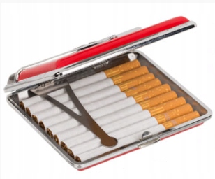 Gadżet o oryginalnym wyglądzie i użyteczny dla każdego palacza - metalowy wyglądem przypominający tradycyjną retro papierośnicę. Wyjmując papierosa z takiego pudełka pokazujesz wysoką klasę i szyk.