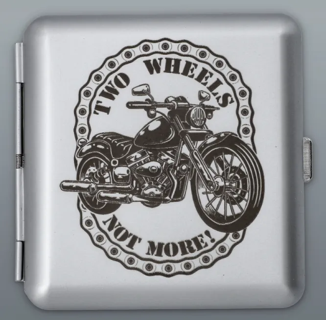Papierośnica z motywem motocykla to praktyczny dodatek, który wyróżnia się w tłumie. Jej solidna budowa i oryginalny nadruk to połączenie stylu z funkcjonalnością – idealna na co dzień lub jako prezent.