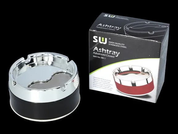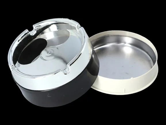 Popielniczka przekręcana z wieczkiem to kompaktowy model ze specjalnego tworzywa i metalowym pojemnikiem w środku. Jeśli chcesz wygodnie zrzucać popiół do wnętrza i mieć porządek na blacie, to praktyczny wybór.