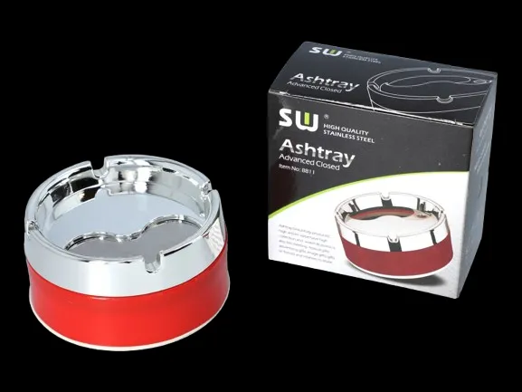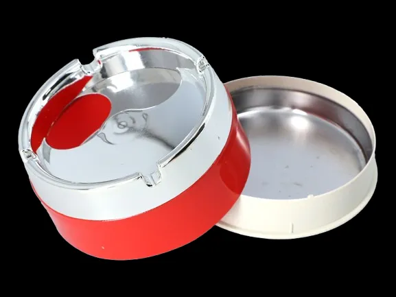 Popielniczka przekręcana z wieczkiem to kompaktowy model ze specjalnego tworzywa i metalowym pojemnikiem w środku. Jeśli chcesz wygodnie zrzucać popiół do wnętrza i mieć porządek na blacie, to praktyczny wybór.