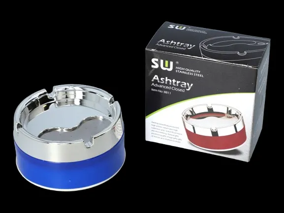 Popielniczka przekręcana z wieczkiem to kompaktowy model ze specjalnego tworzywa i metalowym pojemnikiem w środku. Jeśli chcesz wygodnie zrzucać popiół do wnętrza i mieć porządek na blacie, to praktyczny wybór.