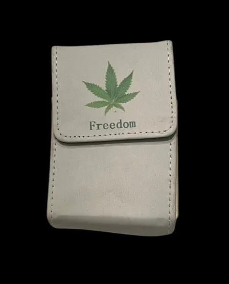 Ecru Pudełko Etui na Paczkę Papierosów z Zielonym Liściem Marychy Freedom