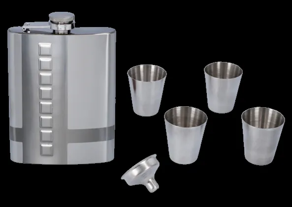 Srebrna Piersiówka z Kieliszkami i Lejkiem w Zestawie Prezentowym Gentelo