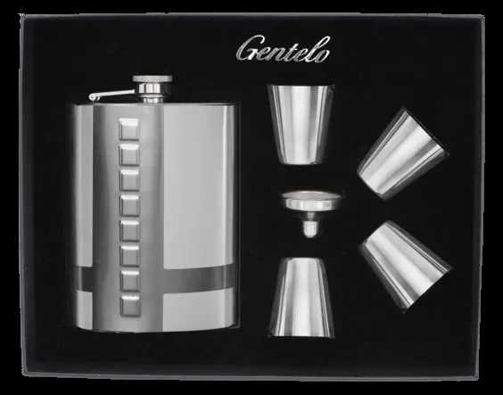 Piersiówka z Kieliszkami i Lejkiem Gentelo o pojemności 236 ml to idealny wybór dla miłośników wyrafinowanego stylu i praktyczności. Wykonana z wysokiej jakości stali nierdzewnej, zapewnia nie tylko trwałość, ale także elegancki wygląd. Jej srebrny kolor sprawia, że staje się doskonałym dodatkiem do każdej okazji, zarówno podczas spotkań towarzyskich, jak i prywatnych celebracji.