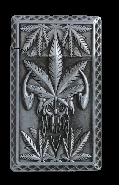 Srebrna zapalniczka gazowa Gentelo Ganja to stylowy i solidny gadżet, który łączy w sobie wysoką funkcjonalność oraz unikalny design z motywem liścia konopi i czaszki. Obudowa wykonana z trwałego metalu o wymiarach 5,8 x 3,9 x 1,3 cm doskonale leży w dłoni, a kunsztownie tłoczone wzory dodają jej niepowtarzalnego charakteru. Zapalniczka wyróżnia się precyzyjnym, dopracowanym wykończeniem, które doceni każdy miłośnik nietuzinkowych akcesoriów.