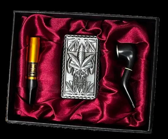 Srebrna Zapalniczka Gazowa w Zestawie Prezentowym z Lufką i Fajką Gentelo